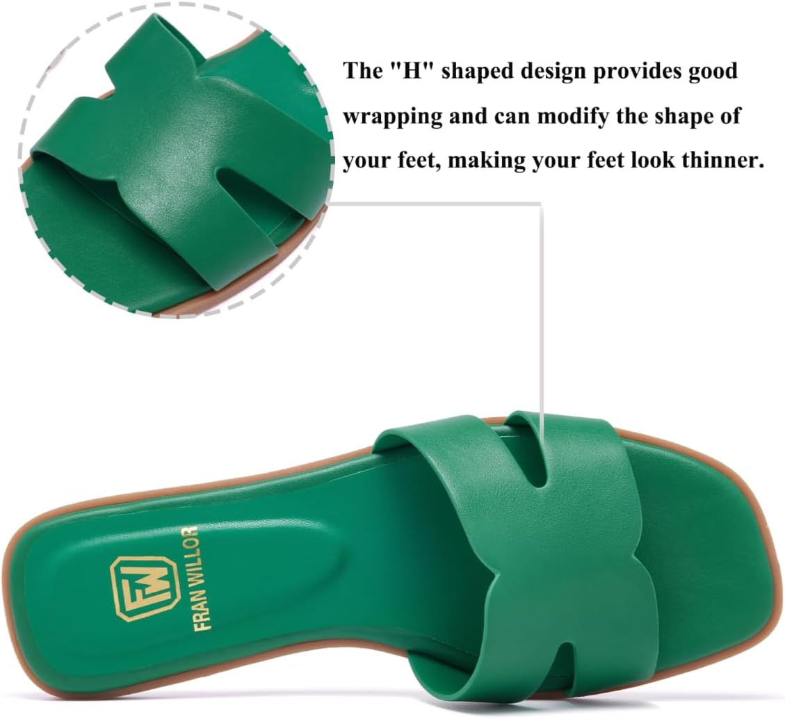 Women’s Flat Sandals Dressy Comfortable Slide Sandals Fashion Square Open Toe Slip On Beach Sandals for Summer
