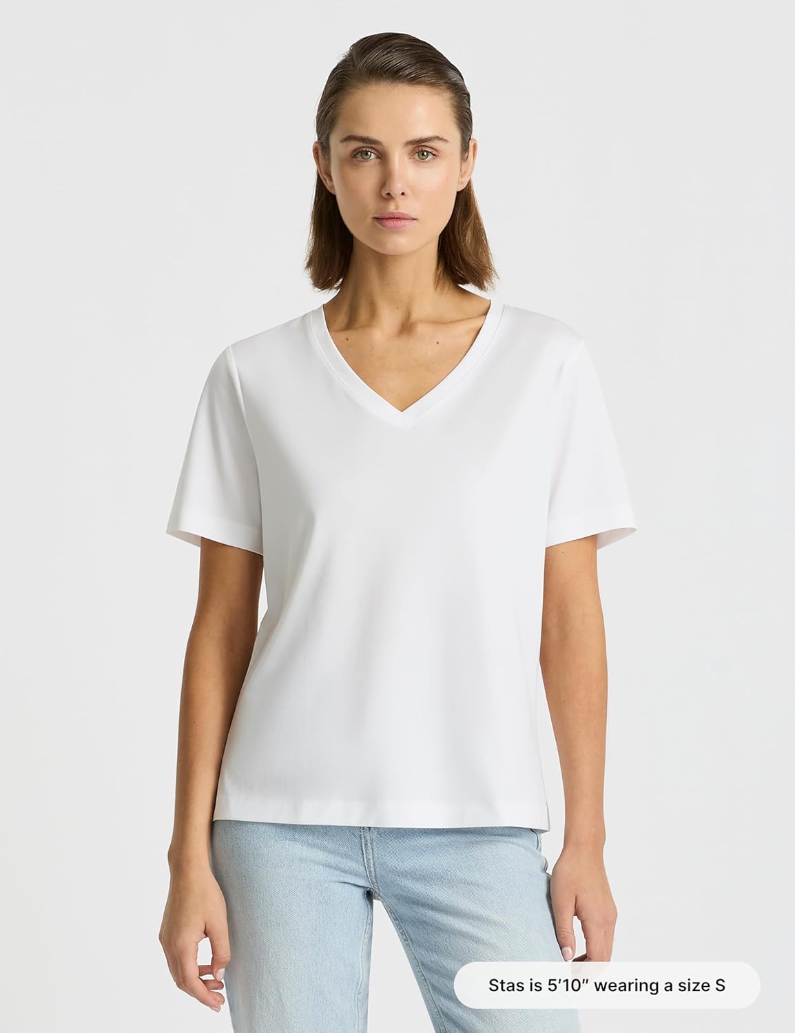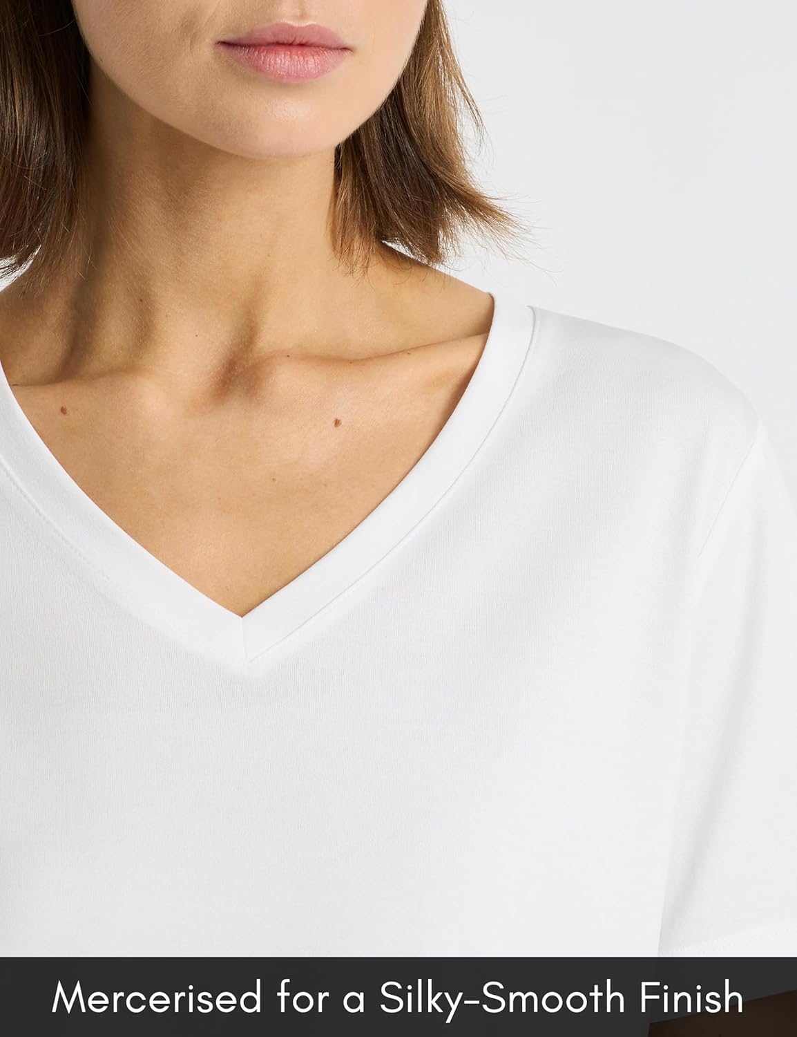Women’s Supima® Mercerised Cotton V-Neck T-Shirt – USA-Grown Cotton, Luxury Finish, Short Sleeve, Flattering Fit