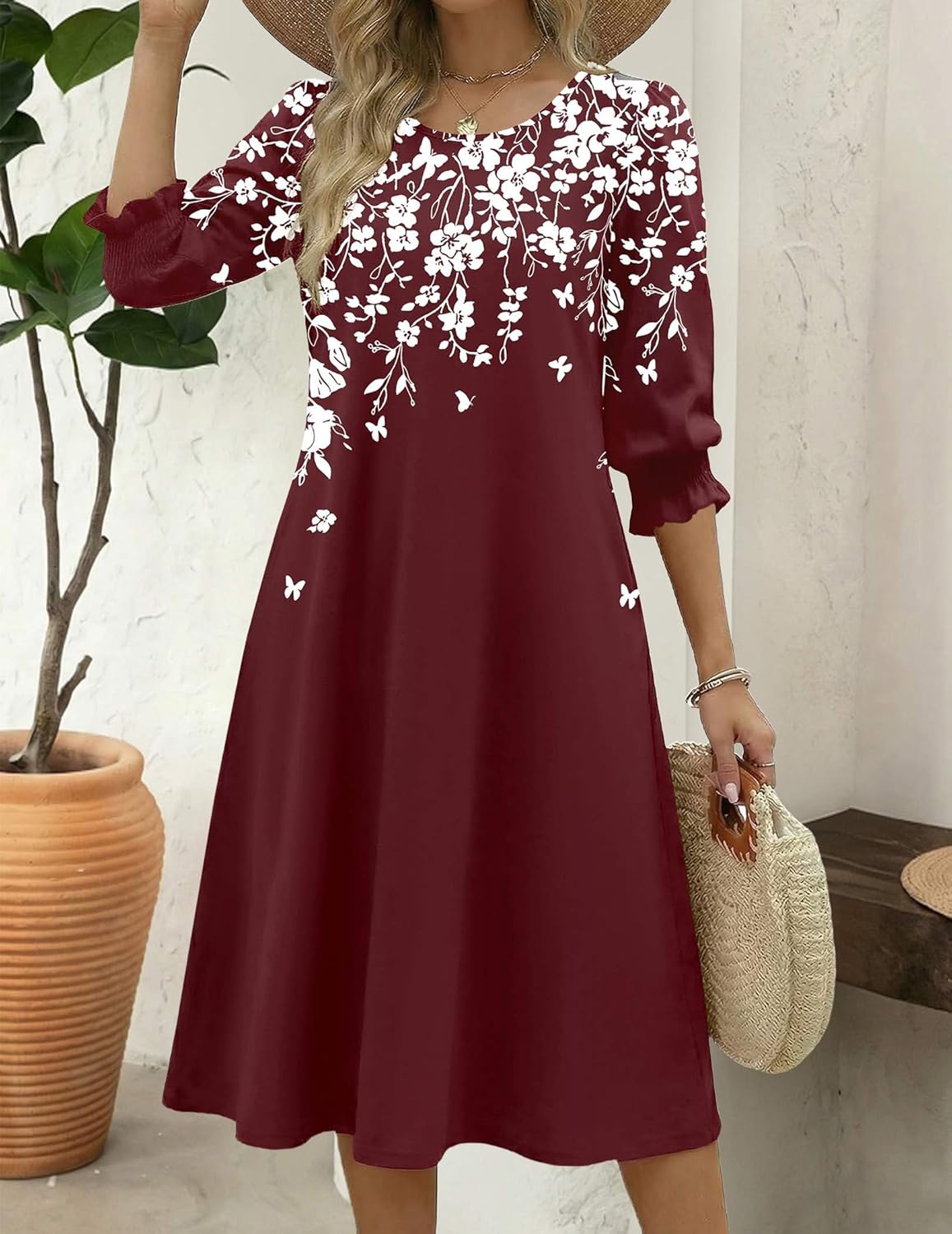 The video showcases the product in use.The video guides you through product setup.The video compares multiple products.The video shows the product being unpacked. Zeagoo 3/4 sleeve dress for women Merchant Video
