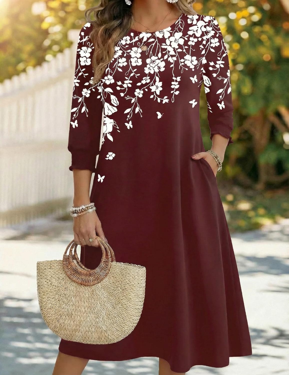 Zeagoo Summer Dresses for Women 2026 3/4 Sleeve Dress for Women Floral Midi Dresses for Casual Womens Dresses with Pockets